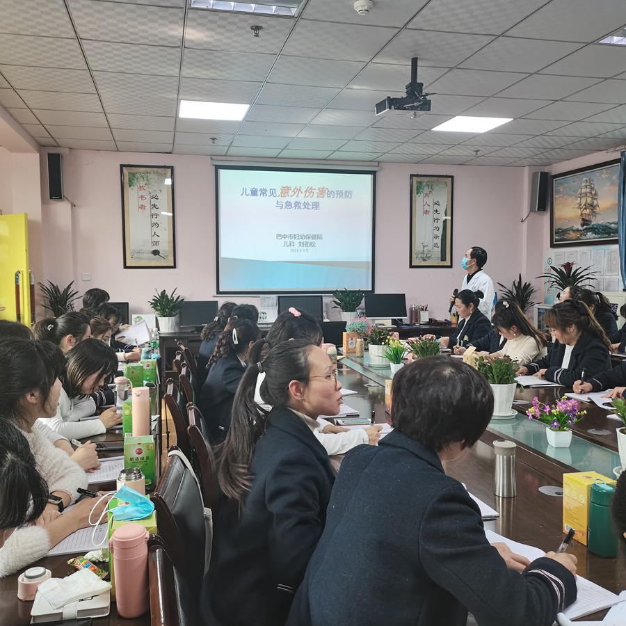 为进一步加强托幼机构管理工作,2021年2月22日,市妇幼保健院组织医务人员前往巴中市艺体幼儿园开展“儿童常见意外伤害预防与紧急处理”专题讲座。艺体幼儿园60余名教职员工参加。儿
